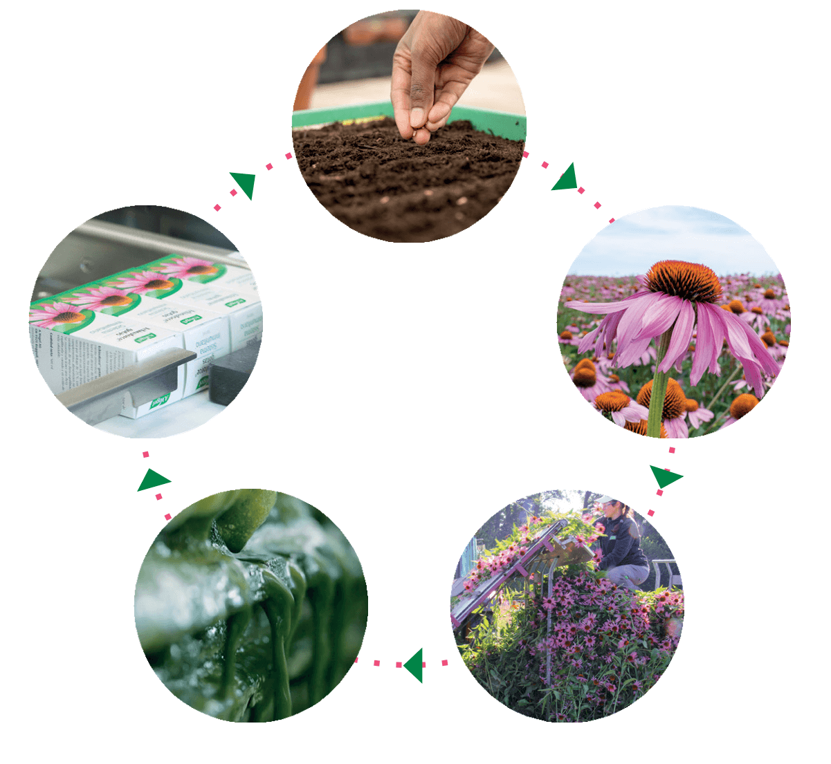 Voor Echinaforce® worden meer dan 200 kwaliteitsstappen doorlopen – van zaad tot eindproduct – om te garanderen dat elk product een constante hoeveelheid actieve bestanddelen bevat in stabiele, optimale concentraties.