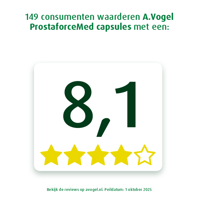 Meerdere keren per nacht plassen? Zwakke urinestraal? Nadruppelen? Dit zijn typische verschijnselen van een goedaardige prostaatvergroting. De prostaattest geeft een indicatie of dit mogelijk het geval is. Doe de A.Vogel prostaattest!*