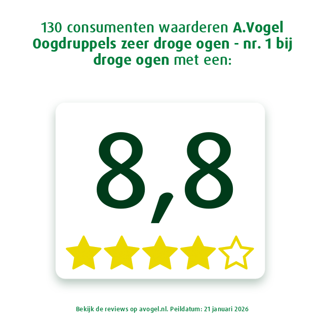 Specialist in oogverzorging - Als je zeer droge of branderige ogen hebt dan geven deze oogdruppels een snelle, intensieve bevochtiging van het oogoppervlak. Het helpt ook bij het behoud van voldoende traanvocht in het oog. A.Vogel Oogdruppels zeer droge ogen is nummer 1 bij droge ogen*.