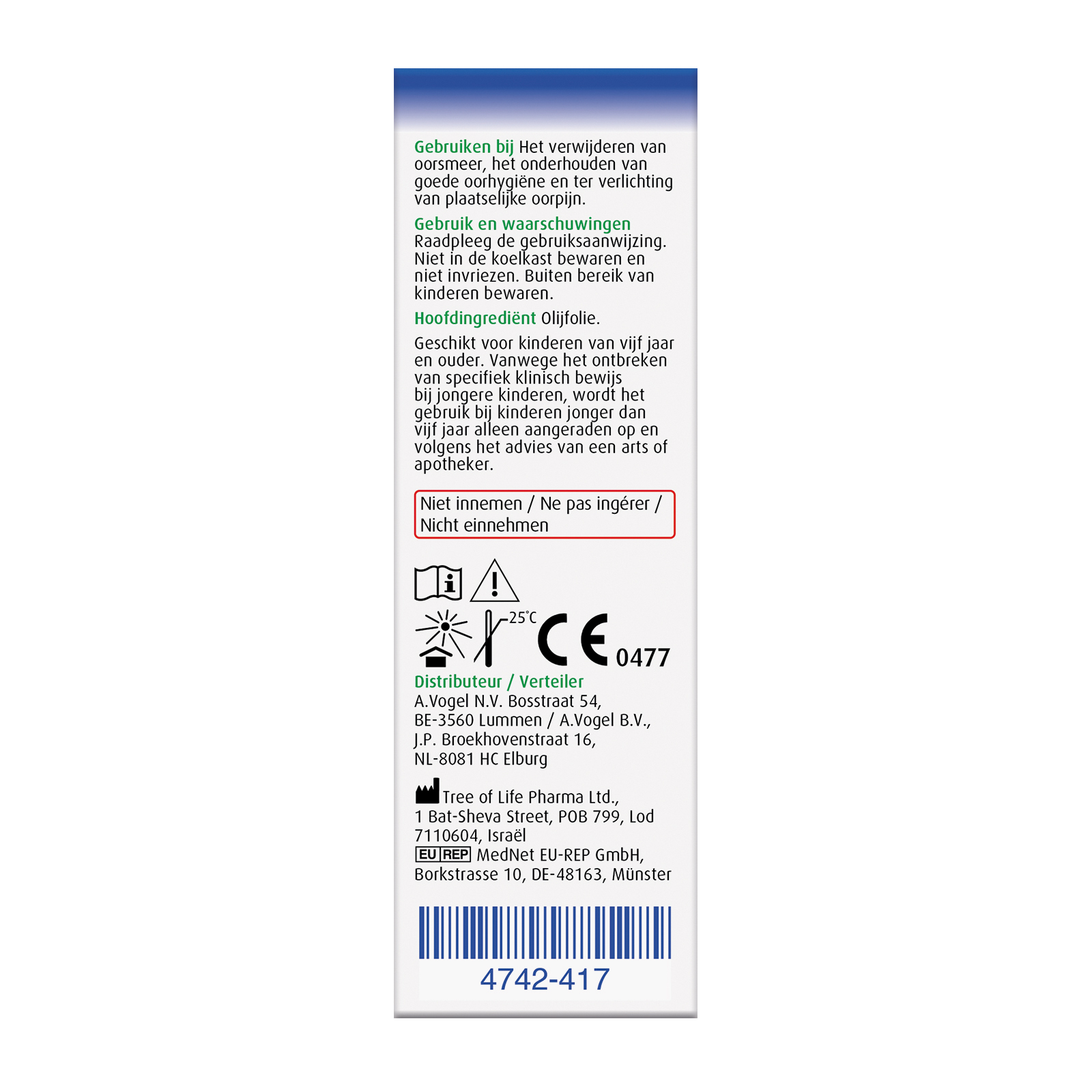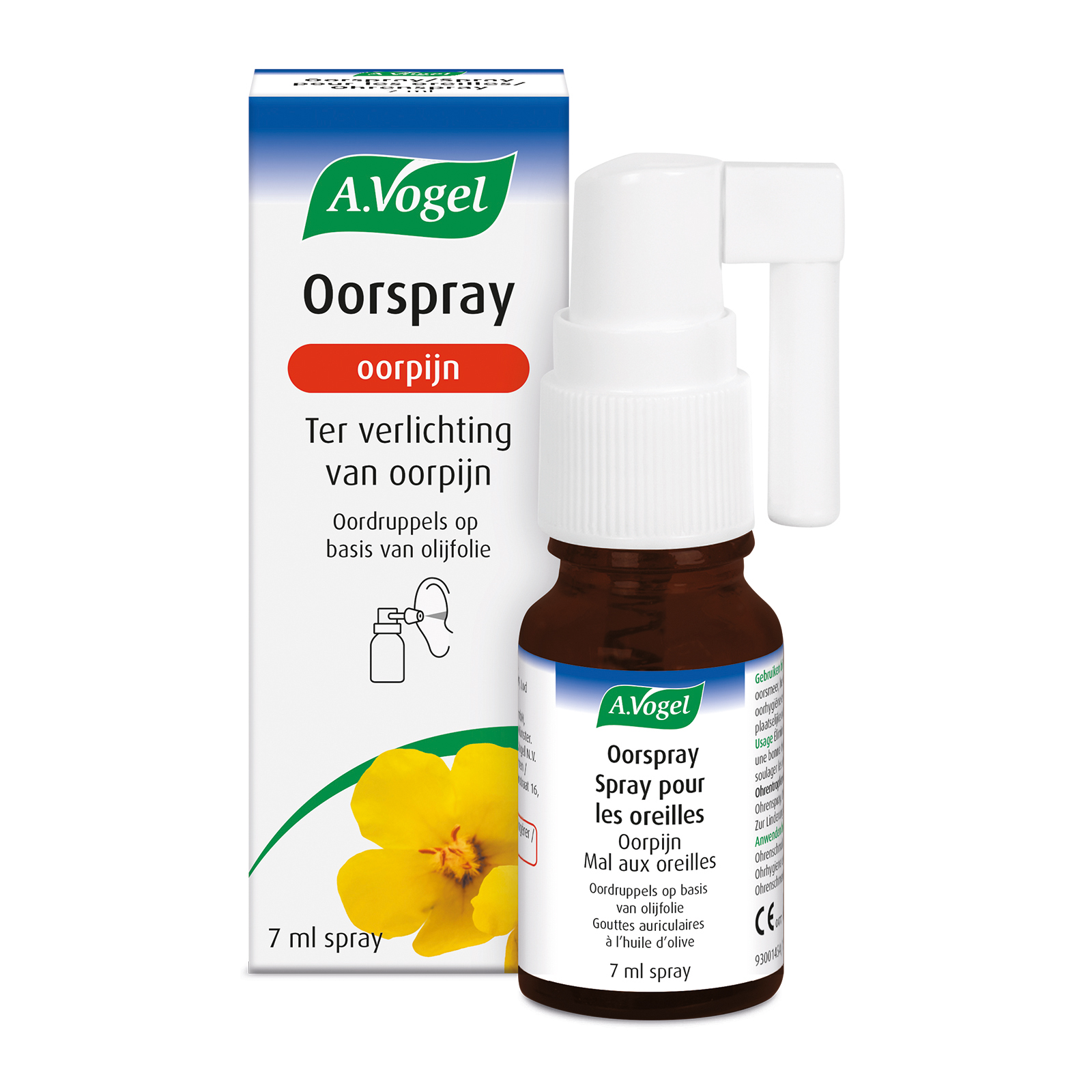 Cerumen, of ‘oorsmeer’, is een van nature voorkomende stof die de uitwendige gehoorgang reinigt, beschermt en smeert. Normaal wordt dit oorsmeer verwijderd uit het oor door een zelfreinigend mechanisme. In sommige gevallen kan het oorsmeer zich echter ophopen en daardoor ongewenste effecten veroorzaken, waaronder pijn, gehoorverlies, jeuk, gevoel van volheid en hoesten. A.Vogel Oorspray verzacht het oorsmeer en smeert de buitenste gehoorgang en helpt zo bij de natuurlijke verwijdering van oorsmeer uit de gehoorgang. A.Vogel Oorspray bedekt bovendien de gehoorgang met een olieachtige laag, die beschermt tegen vuil en verontreinigingen van buitenaf. Samen helpt dit bij het verlichten van oorpijn.
