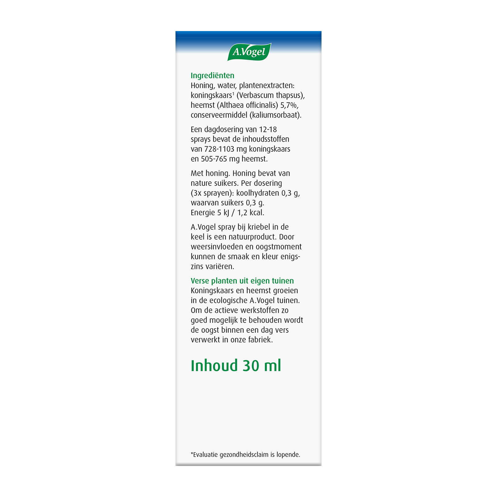 Voedingssupplement - kruidenpreparaat. Lees voor gebruik de gebruiksaanwijzing. 1 Koningskaars. * Evaluatie gezondheidsclaim is lopende.