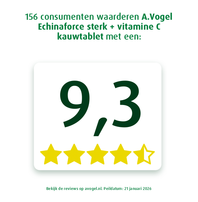 A.Vogel Echinaforce kauwtabletten sterk** bevat een hoge dosering Echinacea purpurea (rode zonnehoed). Deze Echinaforce variant is bijzonder door de toegevoegde vitamine C. Dit helpt onder andere bij de bescherming van gezonde lichaamscellen.