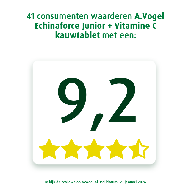 Er zijn omstandigheden waarbij kinderen wel wat ondersteuning voor de weerstand [1]* kunnen gebruiken. Daarvoor is Echinaforce Junior. Een kauwtablet op basis van Echinacea purpurea. Met vitamine C en een lekkere framboossmaak.